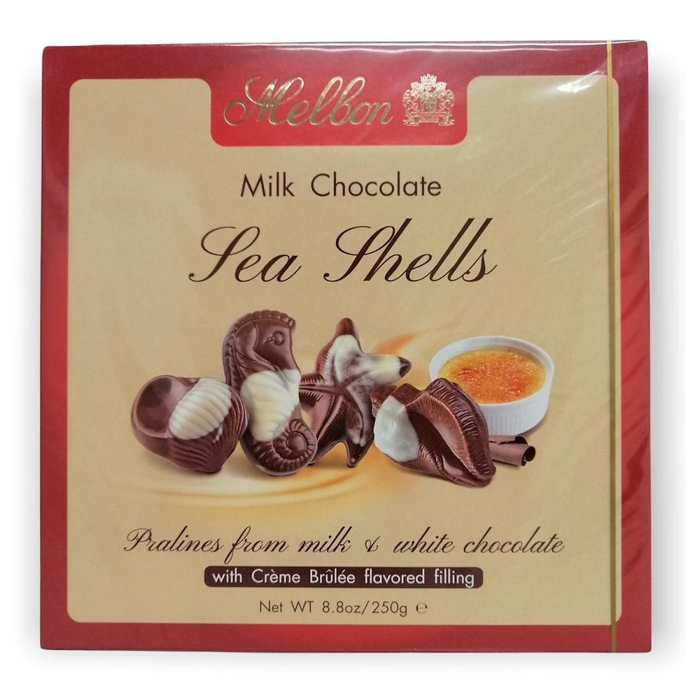 מארז מעוצב עם סרט- שוקלד חלב,לבן בצורת צדפות